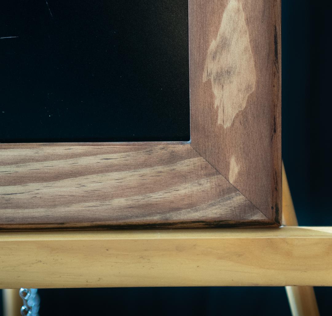 The outer dimensions of this framed print measure 15-1/2″ x 18-1/2″. The frame is stained Pine wood, recessed toward the outer edges with a handpainted back frame.
