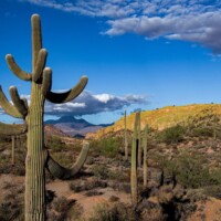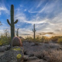 The Sonoran Desert in Arizona defies the typical image of a barren landscape. Summer monsoons breathe life into dry washes, supporting a rich ecosystem of towering saguaros, barrel cacti, and spiny chollas. In spring, vibrant wildflowers like golden poppies and lupine blanket the desert floor, revealing the unexpected beauty and resilience of this unique environment.